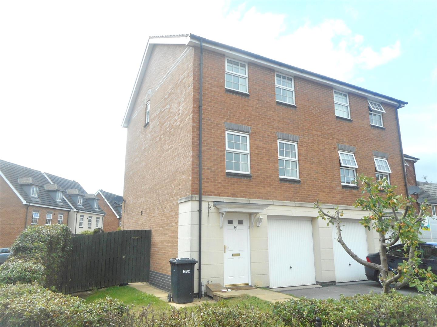 A well presented and spacious three bedroom modern town house arranged over three floors.The property benefits from gas central heating, double glazing, garage, gardens and briefly comprises; Entrance hall, cloaks/W.C., modern dining kitchen, to the first floor: Spacious lounge and bedroom three leading to the second floor: Master bedroom with en-suite, further bedroom and house bathroom. To The exterior: the property has a lawned garden to the front with driveway leading to single garage with further lawned area to the side and a gravel and patio garden to the rear. AVAILABLE MID MARCH!!!