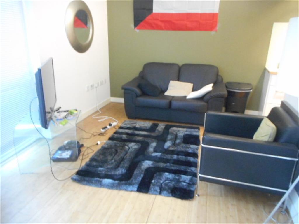 Double glazed window to front aspect, laminate wood flooring, two electric wall heaters, TV and Phone point, leather sofa and chair, glass dining table and chairs, glass tv stand. Open to:
