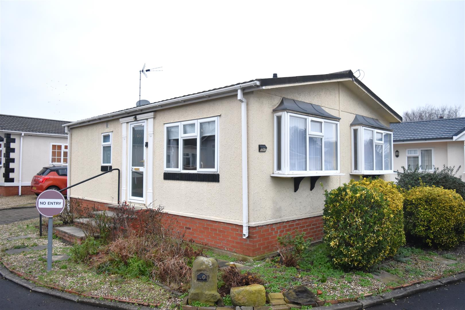 A superbly presented two double bedroom Detached 20ft x 28ft Omar Park Home set on the popular and fully residential Grosvenor Park. The property benefits from being modern, light and spacious, gas central heating, double glazing, off street parking and low maintenance garden. Briefly comprises: Front door leading into lounge open to dining room, kitchen, inner hallway, master bedroom with built in wardrobes, further double bedroom and bathroom. Externally: Low maintenance gravelled garden to front and side aspects with mature shrubs and enclosed patio seating area, blocked paved driveway to the side aspect providing off street parking for two cars.