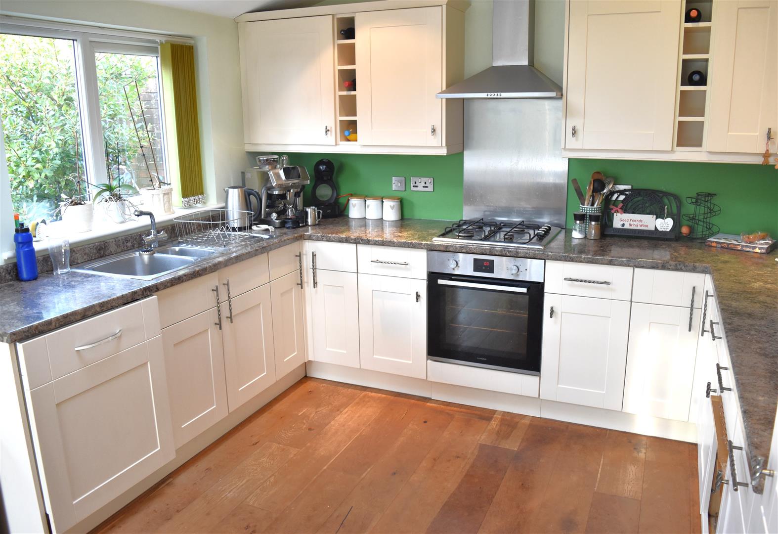 Solid wood floor, double radiator, inset ceiling spot lights.